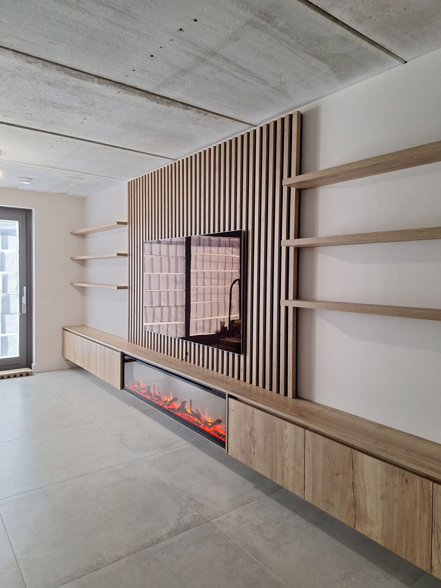 Onze ontwerpers denken mee over verhoudingen, kleurgebruik en indeling. Wil je de nadruk op de haard leggen, of juist de tv subtiel laten opgaan in de wand? Alles is mogelijk.