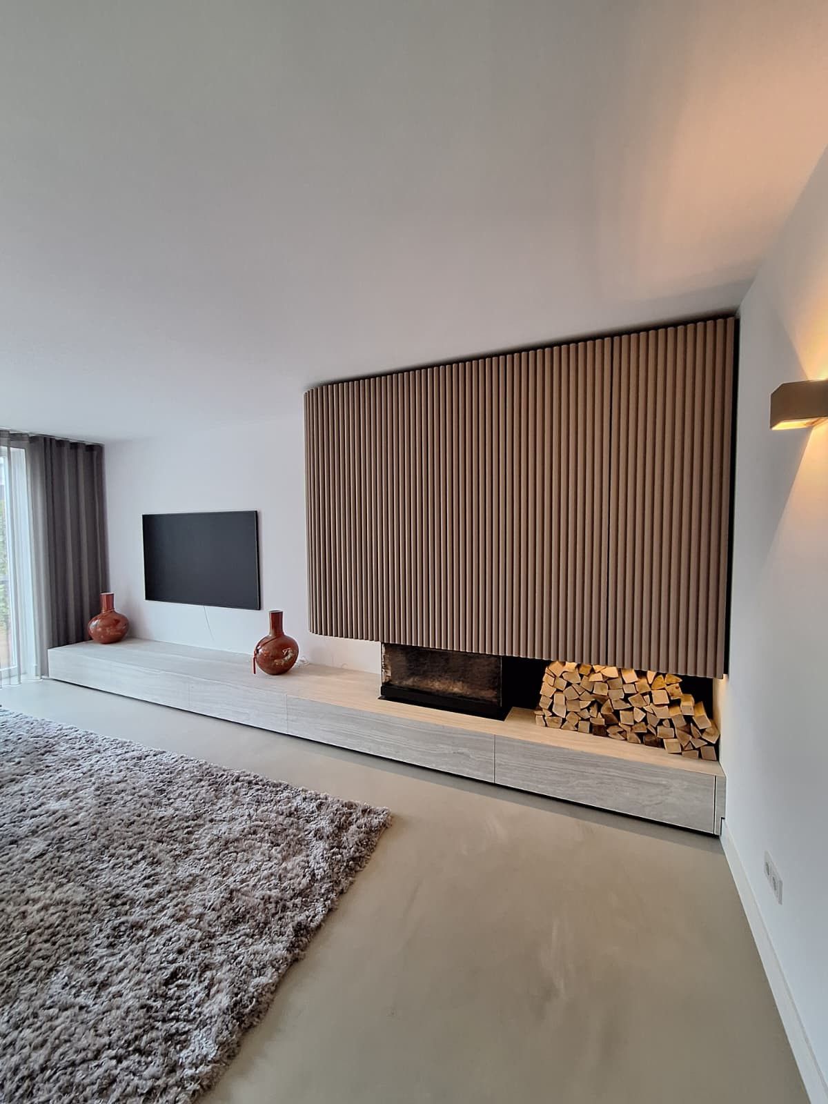 Onze ontwerpers denken mee over verhoudingen, kleurgebruik en indeling. Wil je de nadruk op de haard leggen, of juist de tv subtiel laten opgaan in de wand? Alles is mogelijk.